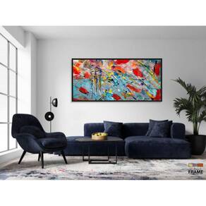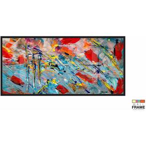 Quadro Decorativo Pintura Abstrata Color 130x60 Moldura Preta 2x2