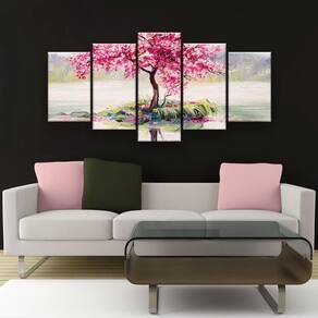 Quadro Decorativo Pintura Árvore De Cerejas 129X61Cm 5 Peças Tamanho total: 129cm comprimento X 61cm altura Peças menores: 25x40 cm Peças médias: 25x50 cm Peça central: 25x61 cm Espaçamento entre as peças: 1 cm A instalação é bem simples, pois utilizamos o método tradicional, pendurado com preguinhos. Acompanha um gabarito para facilitar a aplicação. A aplicação com o gabarito que enviamos é prática e rápida. Para limpeza, utilize apenas um pano umedecido com água sem produtos químicos para garantir a durabilidade. Nossos quadros são impressos em vinil semi-fosco de alta qualidade, aplicado em Madeira MDF com espessura de 6mm + base de madeira MDF de 9mm Total 15mm Não necessita de moldura, pois o acabamento das bordas/laterais é feito com a própria imagem impressa. Impressão em alta qualidade. Imagens em HD Alta Definição Mínimo de 12000 pixels. Marca: Não Informado