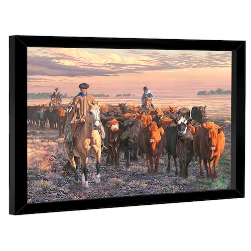 Quadro Decorativo Pintura Boiada Moldura Preta - 118x78cm -
