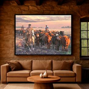 Quadro Decorativo Pintura Boiada Moldura Branca e Vidro - 180x105cm -