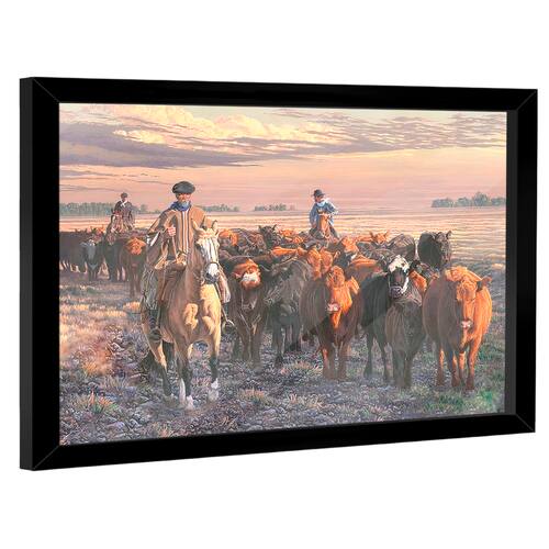 Quadro Decorativo Pintura Boiada Moldura Preta e Vidro - 60x40cm -