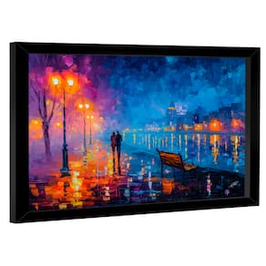 Quadro Decorativo Pintura Colorida de Casal Moldura Preta e Vidro - 118x78cm -