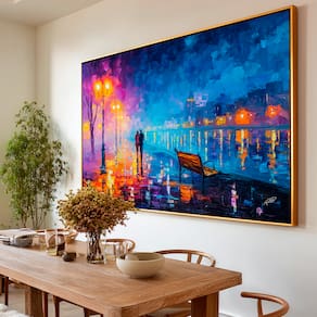 Essas molduras estilo canaleta, com perfil de 5 cm de profundidade, são cuidadosamente projetadas para complementar o mesmo tecido canvas esticado no chassi, mantendo a essência da obra enquanto adicionam uma camada adicional de destaque e elegância.