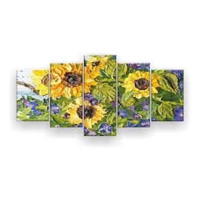 Quadro Decorativo Pintura Girassol Tinta Espessa 129x61