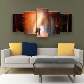 Tamanho total: 129cm comprimento X 61cm altura Peças menores: 25x40 cm Peças médias: 25x50 cm Peça central: 25x61 cm Espaçamento entre as peças: 1 cm A instalação é bem simples, pois utilizamos o método tradicional, pendurado com preguinhos. Acompanha um gabarito para facilitar a aplicação. A aplicação com o gabarito que enviamos é prática e rápida. Para limpeza, utilize apenas um pano umedecido com água sem produtos químicos para garantir a durabilidade. Nossos quadros são impressos em vinil semi-fosco de alta qualidade, aplicado em Madeira MDF com espessura de 6mm + base de madeira MDF de 9mm Total 15mm Não necessita de moldura, pois o acabamento das bordas/laterais é feito com a própria imagem impressa. Impressão em alta qualidade. Imagens em HD Alta Definição Mínimo de 12000 pixels. Marca: Imperio Dos Quadros Ean: 7898667105373