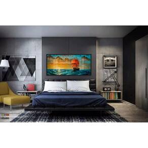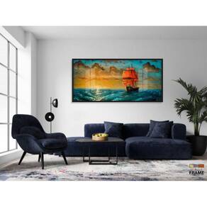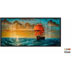 Quadro Decorativo Pintura Navio 130x60 Moldura Preta 2x2