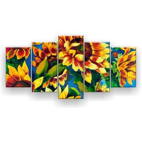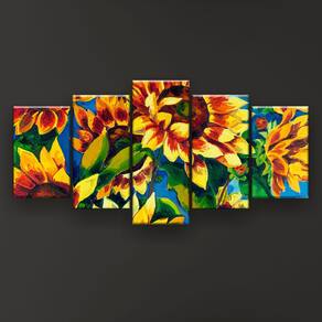 Quadro Decorativo Pintura Oito Girassóis 129X61 5 Peças