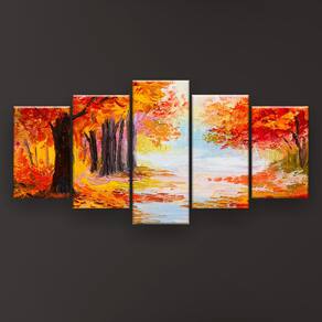 Quadro Decorativo Pintura Passagem De Outono Folhas Laranjas 129X61 5 Peças Tamanho total: 129cm comprimento X 61cm altura Peças menores: 25x40 cm Peças médias: 25x50 cm Peça central: 25x61 cm Espaçamento entre as peças: 1 cm A instalação é bem simples, pois utilizamos o método tradicional, pendurado com preguinhos. Acompanha um gabarito para facilitar a aplicação. A aplicação com o gabarito que enviamos é prática e rápida. Para limpeza, utilize apenas um pano umedecido com água sem produtos químicos para garantir a durabilidade. Nossos quadros são impressos em vinil semi-fosco de alta qualidade, aplicado em Madeira MDF com espessura de 6mm + base de madeira MDF de 9mm Total 15mm Não necessita de moldura, pois o acabamento das bordas/laterais é feito com a própria imagem impressa. Impressão em alta qualidade. Imagens em HD Alta Definição Mínimo de 12000 pixels. Marca: Não Informado Ean: 7898667104741
