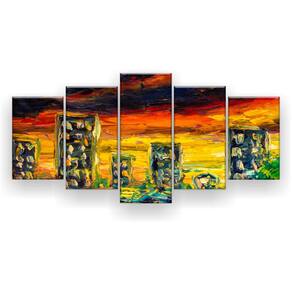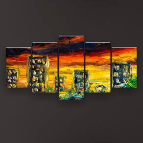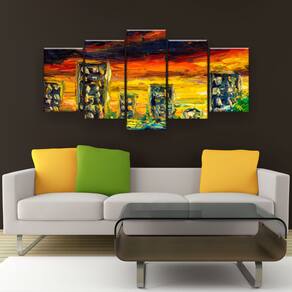 Quadro Decorativo Pintura Prédios Abandonados 129X61 5 Peças