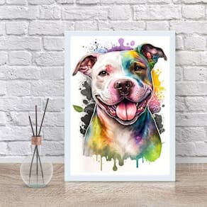 Quadro decorativo pitt bull happy aquarela 45x34cm - com vidro Moldura: madeira preta Informações do produto tire todas as suas dúvidas no descritivo abaixo: decoração para quarto, sala, cozinha, escritório, área gourmet e muito mais. Chega de paredes vazias medidas - cada peça tem 45x34cm a3 . Material do papel - papel fotográfico brilhante de altíssima resolução acabamento - todos os quadros são acompanhados de vidro para proteção da imagem. - moldura em madeira maciça na cor preta ou branca conforme produto escolhido e pendurador . - os quadros são embalados de forma segura com plástico bolha com camada dupla de acordo com o tamanho dos quadros. Garantia - garantia de 3 meses. Meu quadro chegou. Como posso fixá-lo Você precisa apenas de um martelo e um prego, pois os quadros já vão acompanhados de penduradores. Esta é a forma mais indicada. Como posso limpar meu quadro A limpeza é feita como um móvel comum da sua casa. Apenas um pano seco ou espanador são suficientes para tal Ean: 7897725198739