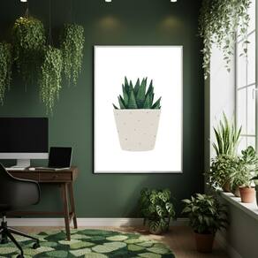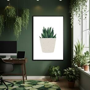 Quadro Decorativo Planta Em Vaso Bege 70x50cm Mold Preta