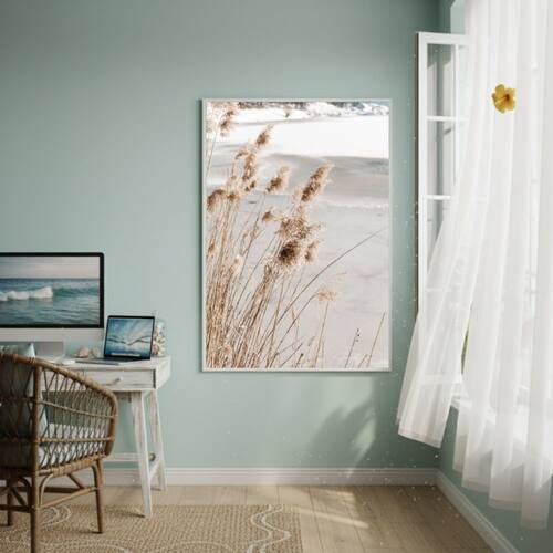 Quadro Decorativo Plantas Na Praia-70x50cm - Cor: Moldura Branca