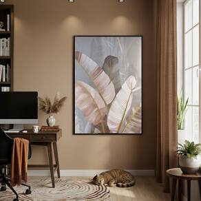 Quadro Decorativo Plumas Botânicas 70x50cm Mold Preta