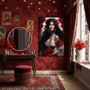 Quadro Decorativo Pomba Gira Entidade Espiritual - 70x50cm - Cor: Moldura Branca
