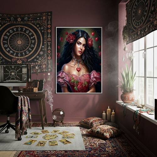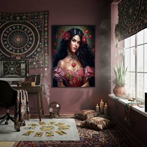 Quadro Decorativo Pombagira Cigana Rosa Vermelha - 70x50cm - Cor: Moldura Preta