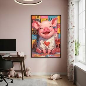 Quadro Decorativo Porco Camisa Coração 70x50cm Mold Preta