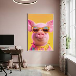 Quadro Decorativo Porco Descolado 70x50cm Mold Branca