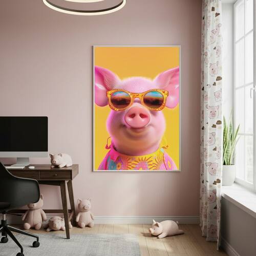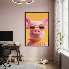 Quadro Decorativo Porco Descolado 70x50cm Mold Preta