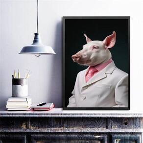 Quadro decorativo porco elegante 33x24cm - com vidro