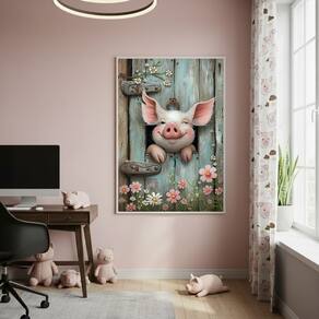 Quadro Decorativo Porco Piscando 70x50cm Mold Branca