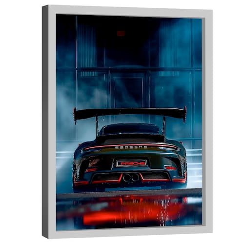Quadro Decorativo Porsche GT3 RS Moldura Branca - 84x54cm -