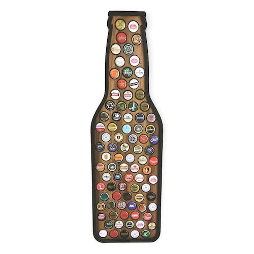 O Quadro Decorativo De Porta Tampinhas Garrafa Decorato - 64Un é perfeito para colecionadores de tampinhas de cerveja que desejam um item exclusivo e decorativo para armazená-las. Com um design rústico que imita os veios naturais da madeira, esse quadro não só decora o ambiente, mas também pode ser um ótimo presente para os amantes de cerveja.