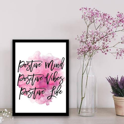 Quadro Decorativo Positive Mind, Vibes and Life - Tamanho: A4 (20 x 30) / Acabamento: Película de acetato / Moldura: Madeira preta
