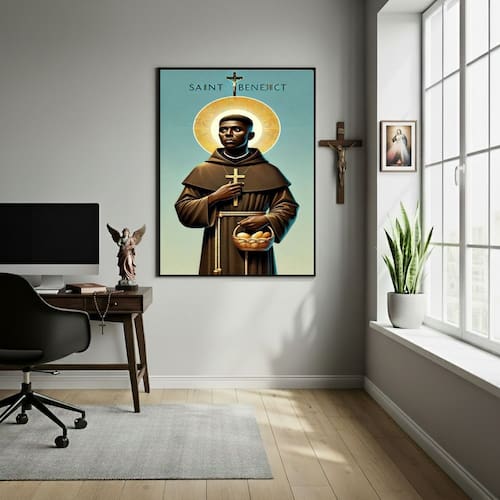 Quadro Decorativo Poster São Benedito - 70x50cm - Cor: Moldura Branca