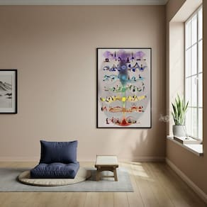 Quadro Decorativo Posturas de Yoga e os 7 Charkras - 70x50cm - Cor: Moldura Preta