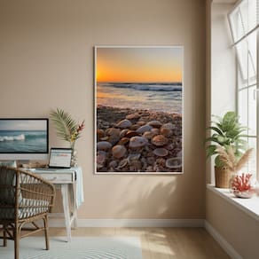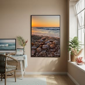 Quadro Decorativo Praia De Conchas-70x50cm - Cor: Moldura Branca