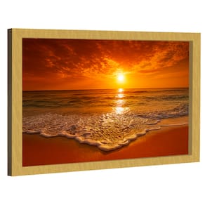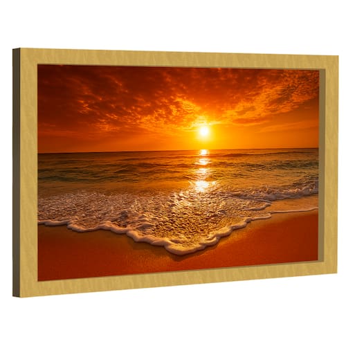 Quadro Decorativo Praia em Clima Tropical Moldura Dourada - 118x78cm -