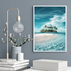 Quadro decorativo praia - ilha 24x18cm Cor: moldura branca Informações do produto tire todas as suas dúvidas no descritivo abaixo: decoração para quarto, sala, cozinha, escritório, área gourmet e muito mais. Chega de paredes vazias medidas - cada peça tem 24x18cm a5 . Material do papel - papel fotográfico brilhante de altíssima resolução acabamento - todos os quadros são acompanhados de uma película de acetato para proteção da imagem. - os quadros são embalados de forma segura com plástico bolha com camada dupla de acordo com o tamanho dos quadros. - de 3 meses. Meu quadro chegou. Como posso fixá-lo Você precisa apenas de um martelo e um prego, pois os quadros já vão acompanhados de penduradores. Esta é a forma mais indicada. Caso prefira, você pode utilizar uma fita dupla face neste caso, sugerimos de alta qualidade para evitar que descole e seu quadro caia . Como posso limpar meu quadro A limpeza é feita como um móvel comum da sua casa. Apenas um pano seco ou espanador são suficientes para tal Ean: 7891234531100
