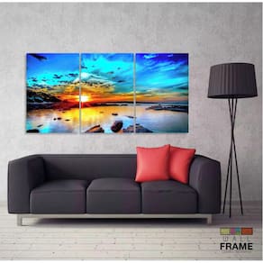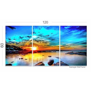 Quadro Decorativo Praia Mar 3 partes 120x60 em tecido
