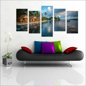 Quadro mosaico com 5 peças Tamanho total 127 cm X 63 cm colocado na parede com espaçamento de 3 cm entre cada peça. Tamanhos Específico Dos Quadros 4 quadros 23 cm x 46 cm 1 quadro 23 cm x 63 cm Qualidade Do Quadro / Impressão e Acabamento - Qualidade Fotográfica Da Imagem. - Material: Quadros impressos em adesivo com qualidade fotográfica, aplicado em MDF com espessura de 12 mm, com acabamentos laterais em preto fosco. - Quadro pronto para colocação na parede. Conteúdo da embalagem: Quadro completo com 5 peças. Ean: 7599681869707