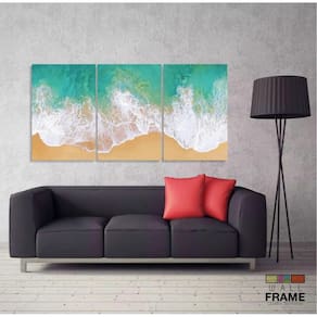 Quadro Decorativo Praia Mar Onda 120x60 3 peças sala