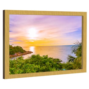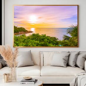 Quadro Decorativo Praia Nascer do Sol Moldura Preta e Vidro - 180x105cm -