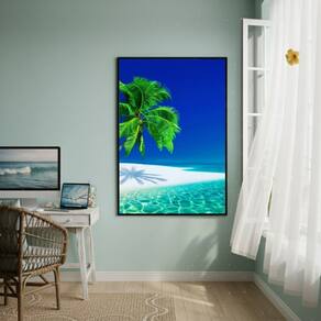 Quadro Decorativo Praia Paraíso-70x50cm - Cor: Moldura Branca