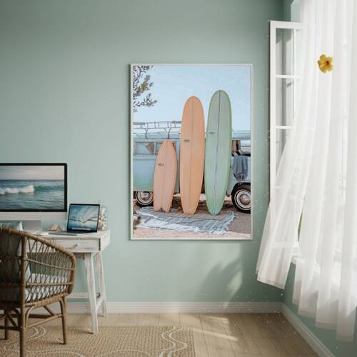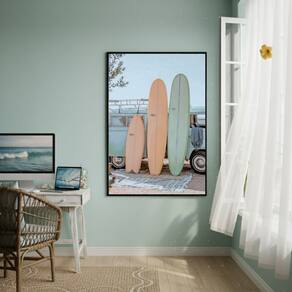 Quadro Decorativo Pranchas Na Kombi-70x50cm - Cor: Moldura Preta