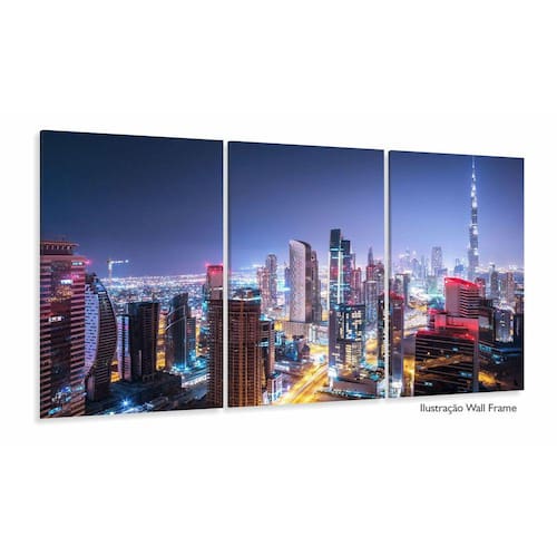 Quadro Decorativo Prédios Cidade Dubai Vista Noturna 3 peças
