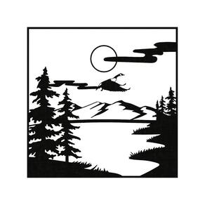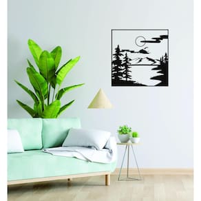 Quadro Decorativo Preto Mdf Arvore Nas Montanhas 40X20Cm