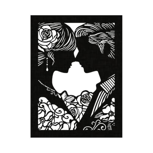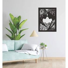 Quadro Decorativo Preto Mdf Beijo Florido 40X20Cm