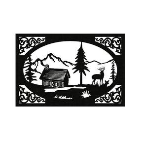 Quadro Decorativo Preto Mdf Casa Nas Montanhas 40X20Cm
