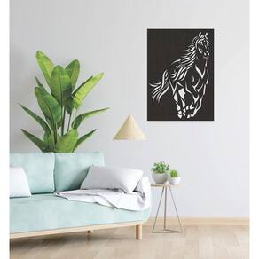Quadro Decorativo Preto Mdf Cavalo 40X20Cm