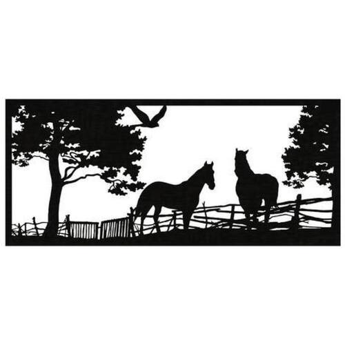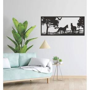 Quadro Decorativo Preto Mdf Cavalos No Campo 40X20Cm