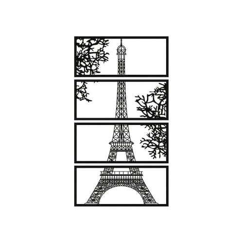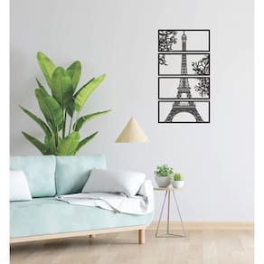 Quadro Decorativo Preto Mdf Decorativo Torre Eiffel 40X20Cm