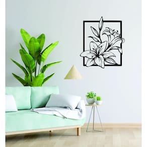 Quadro Decorativo Preto Mdf Flor Lírios 40X20Cm