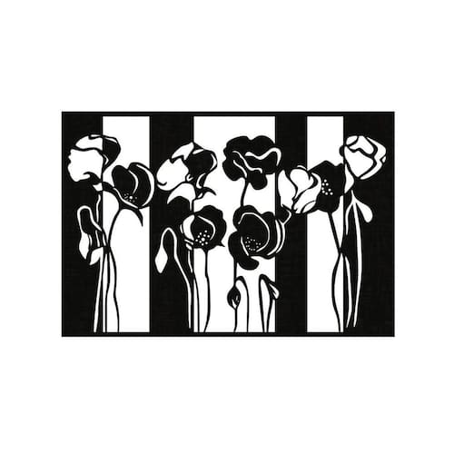 Quadro Decorativo Preto Mdf Flores 40X20Cm