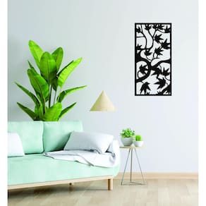 Quadro Decorativo Preto Mdf Folhas Selvagens 40X20Cm