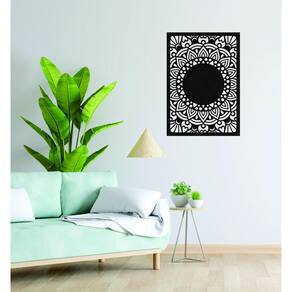 Quadro Decorativo Preto Mdf Mandala Solar 40X20Cm