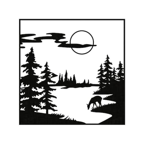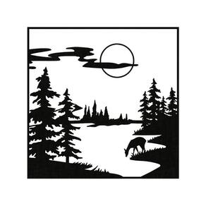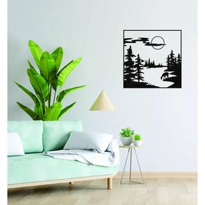 Quadro Decorativo Preto Mdf Paisagem Noturna Floresta 40X20